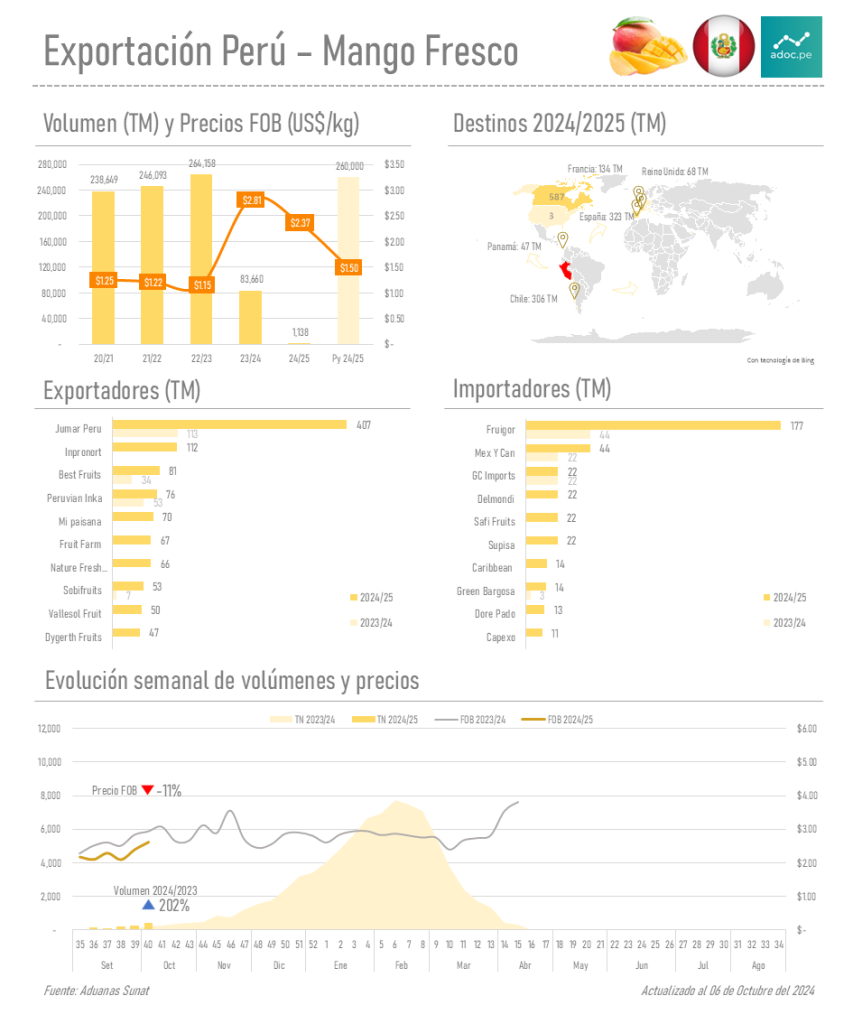 La amplia gama de importadores, liderada por Fruigor, muestra una diversificación de la demanda en varios mercados internacionales. Esto puede ser una señal positiva de que el mango peruano está bien distribuido entre diferentes tipos de compradores.