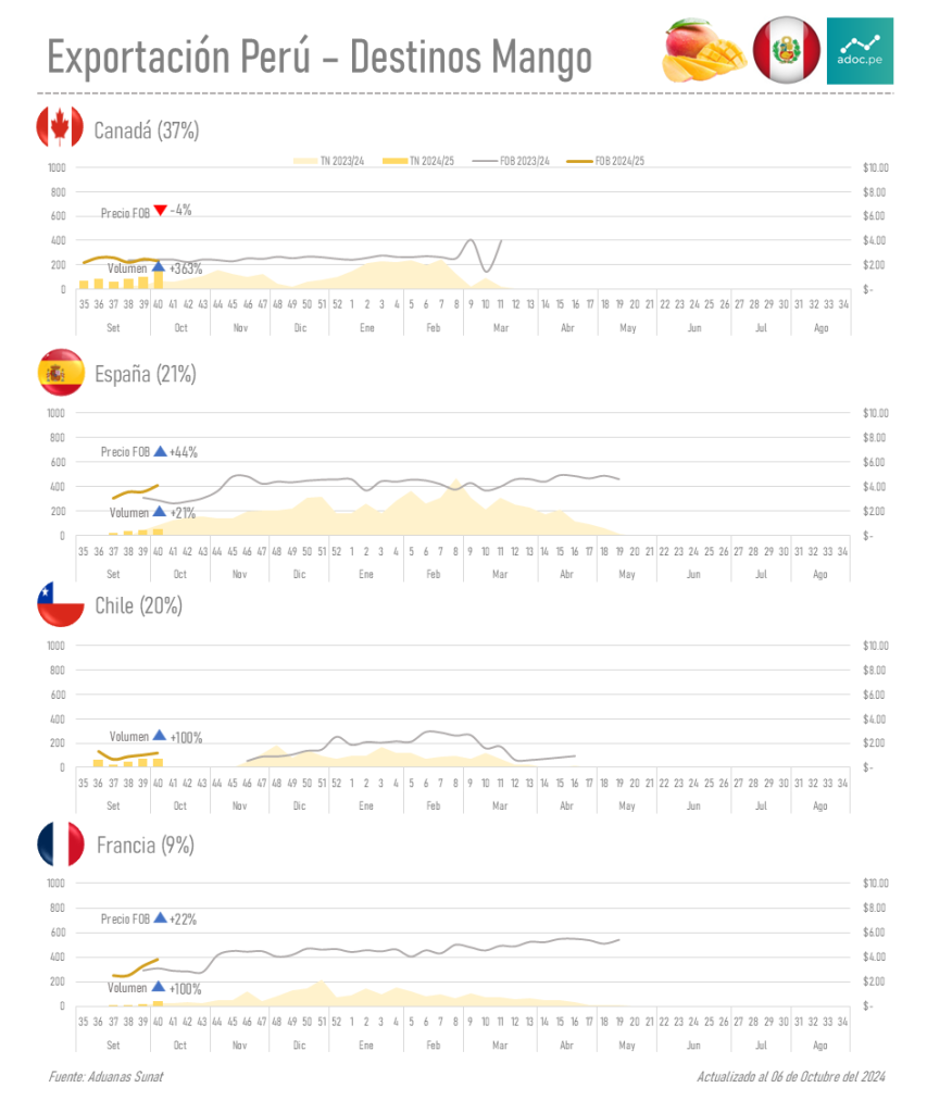 Canadá, mayor destino en la campaña de mango 2024/2025 a la semana 40